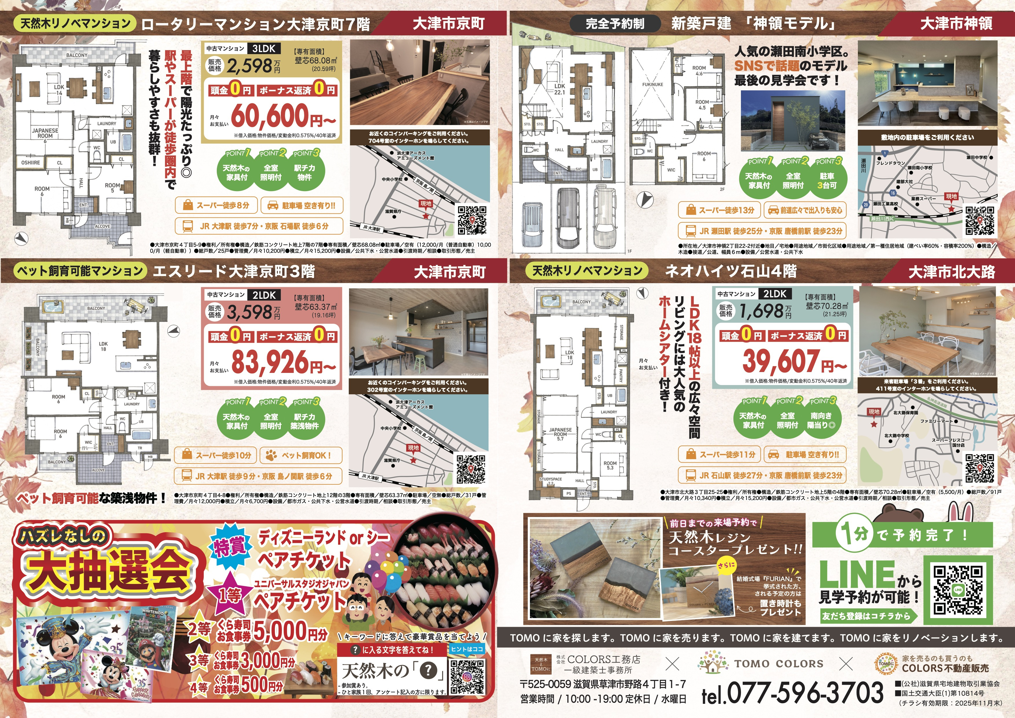 滋賀・京都の不動産|TOMO COLORS(トモカラーズ) > TOMO COLORS(トモカラーズ)のスタッフブログ記事一覧 > 【11/15.16.22.23.24】ロータリーマンション大津京町704・ネオハイツ石山411・エスリード大津京町・神領モデル(予約制)