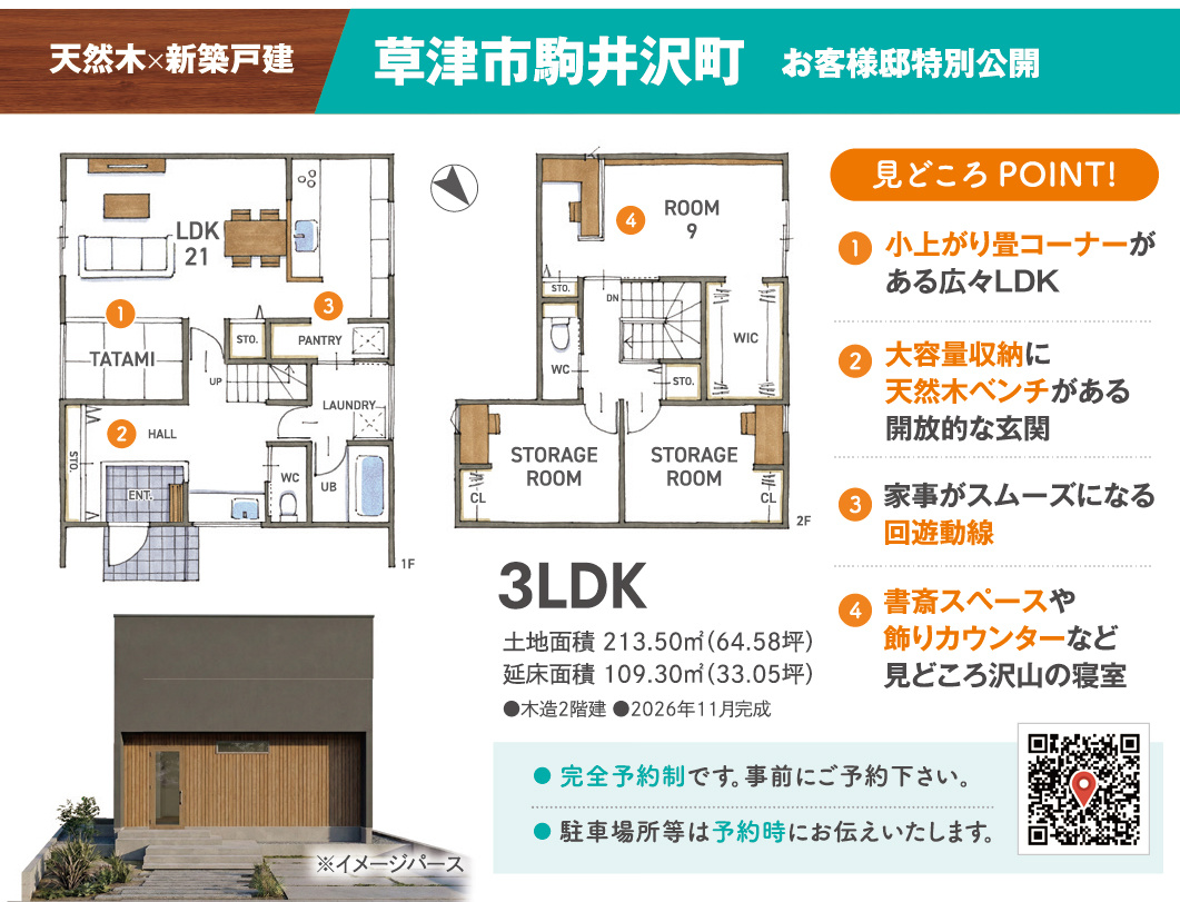 実はこのTUKUHIKOさんのすぐ近くで、予約制の新築戸建て見学会を行っています!