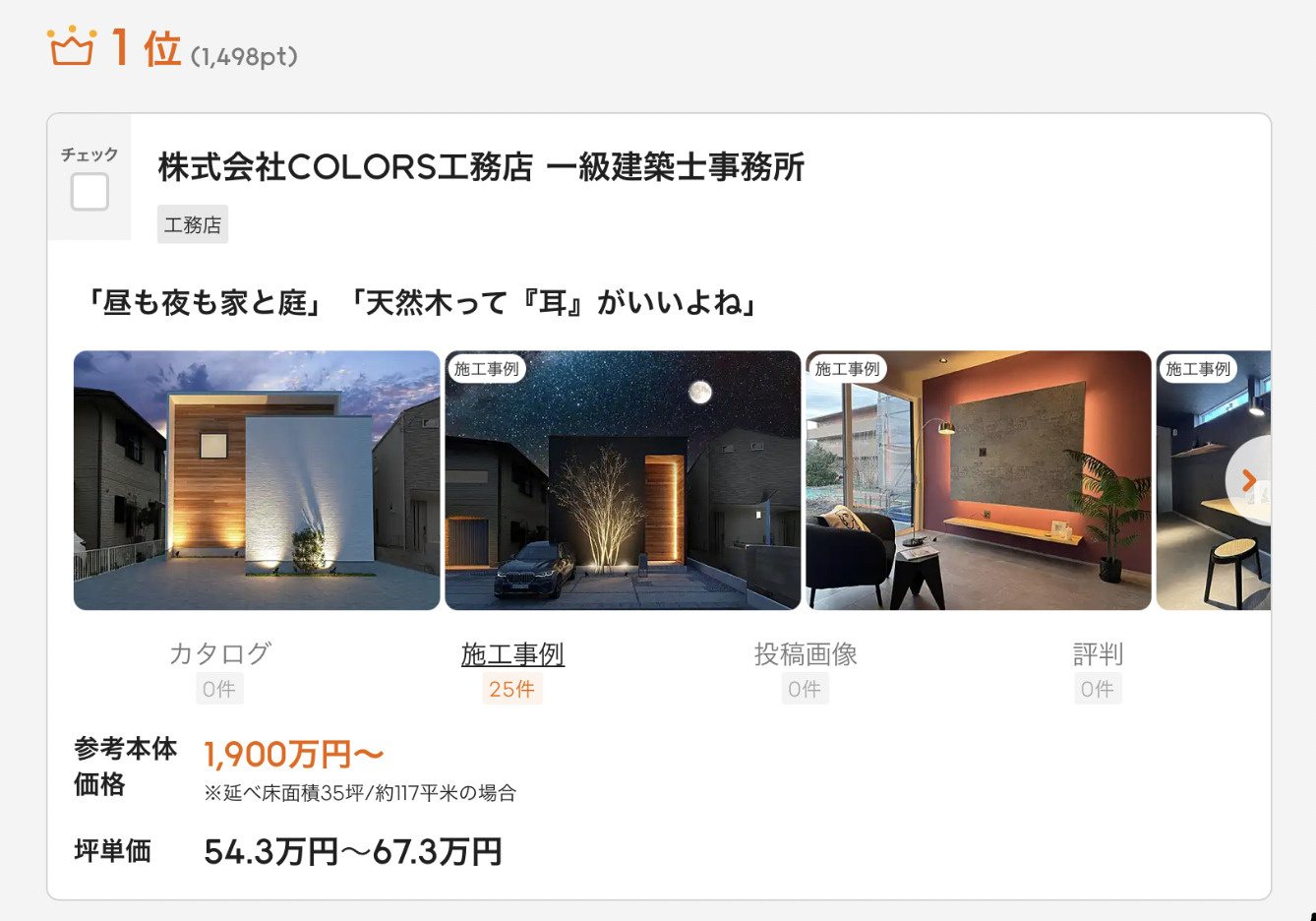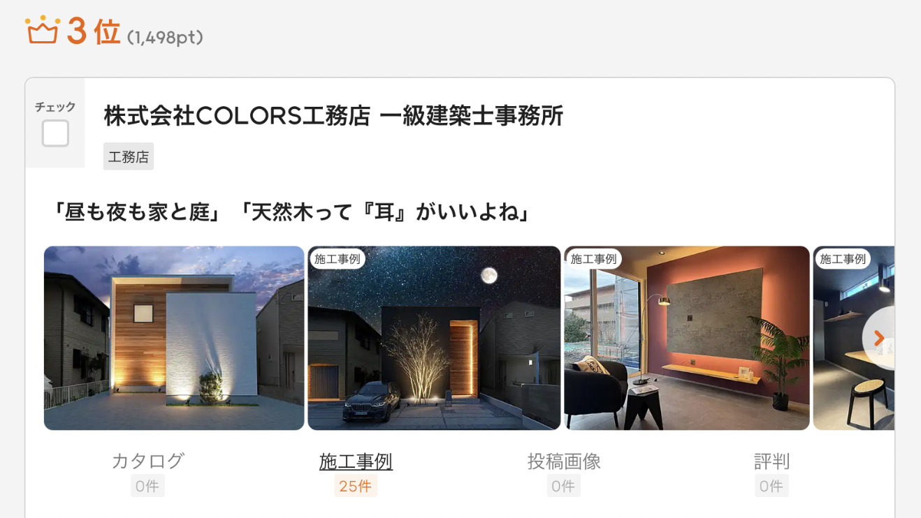 COLORS工務店 一級建築士事務所が、3ヶ月連続で工務店ランキング第1位を獲得いたしました✨